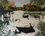 Here is my painting of George the swan and his offspring on Pittville Lake, Acrylics on Art board I hope you like it, I will be doing a series of paintings of the Cotswolds